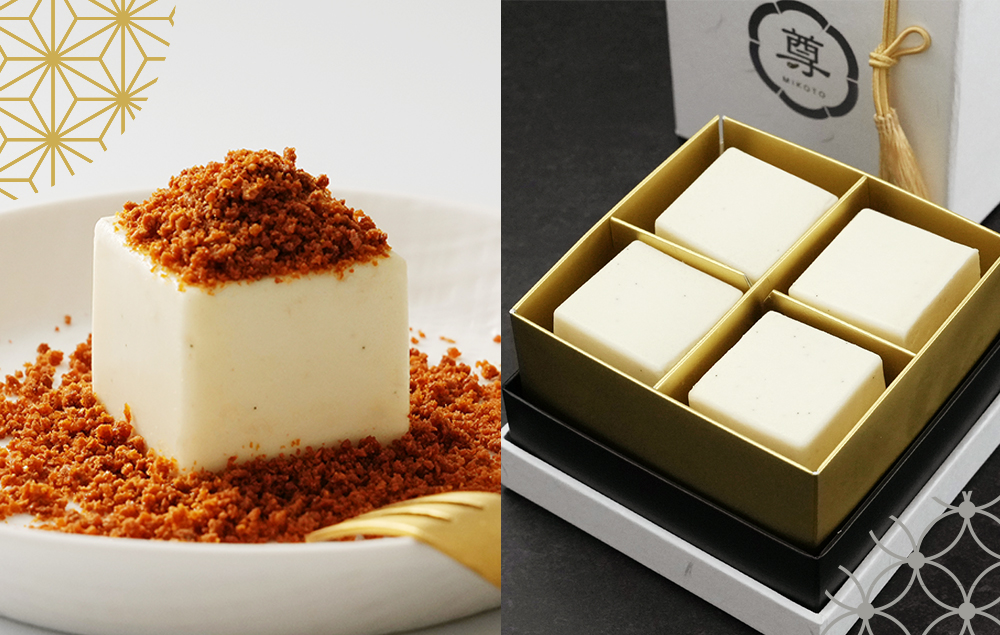 尊チーズケーキは、Hinoichiオリジナルブランド「尊(MIKOTO)」が“献上品”をコンセプトに生み出した、他にはないチーズケーキです。北海道産クリームチーズ、はちみつ、ホワイトチョコレート、最高級マダガスカル産バニラビーンズを黄金比で配合し、レアともベイクドとも異なる新食感を実現しました。冷凍状態から半解凍、全解凍まで、お好みの解凍度合いで味や香り、食感が変化し、一口ごとに発見がある贅沢なひとときをお楽しみいただけます。付属の「尊パウダー」を加えれば、トリュフの芳醇な香りがケーキと溶け合い、さらなる至福の時間を演出します。特別な日の贈り物や、ご自身へのご褒美として、唯一無二の「尊チーズケーキ」をぜひお試しください。