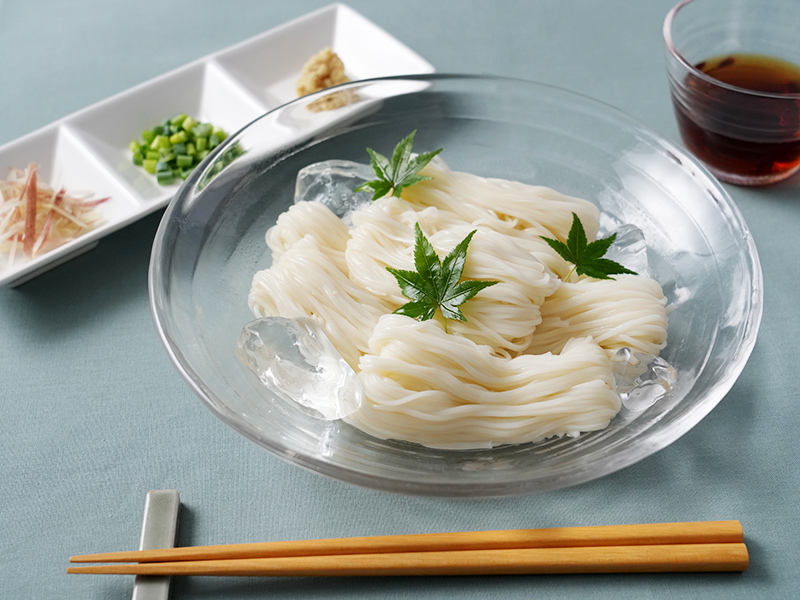 小豆島伝統の「手延べそうめん」は、極細ながらも抜群のコシとほのかな甘みを持ち、のどごしの良さが特徴の一品です。寒冷な時期にのみ製造されるため、麺はさらに美味しさを増し、独特の風味を楽しめます。寒気によって引き締まった麺は、食べた瞬間、心も体も温まる至福のひとときを提供します。フモト製麵所の手延べそうめんは、細さと弾力のバランスが絶妙で、さまざまなアレンジにも最適です。冷たいそうめんとして爽やかにいただくのはもちろん、温かい汁に浸してもその食感を楽しめます。どんな具材や風味とも調和するため、夏の暑い時期だけでなく年間を通してお楽しみいただけるそうめんです。また、カロリーは115kcalと低めでありながら、たんぱく質や炭水化物がバランス良く含まれているため、健康を気にする方にも安心です。どんなシーンでも手軽に楽しめる「寒製手延べそうめん」を、ぜひご賞味ください。