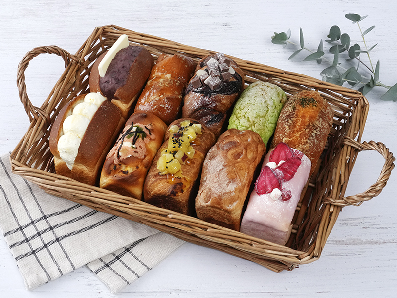 本郷ベーカリーの看板商品「手のひら食パン」を10種類詰め合わせた、贅沢なギフトセット。10cmほどの可愛らしいミニサイズながら、それぞれ異なる味わいが楽しめる特別な一箱です。 カレーパンの王様、あんバター、五郎島金時芋のデニッシュ、明太クリームチーズ、もちっといちご大福、アップルシナモン、クリームパン、ハニーチーズ、本郷メロンパン、チョコデニッシュなど、スイーツ系から惣菜系までバラエティ豊かなこだわりの10種を詰め合わせました。(※セット内容は季節により変更となる場合があります) 本郷ベーカリー独自の製法で、焼き立ての美味しさを瞬間冷凍。食べるときに軽くトーストすれば、ふんわり&サクッとした食感の焼きたてのような美味しさをお楽しみいただけます。 ギフトボックスに入れてお届けするので、大切な方への贈り物にも最適。お誕生日や記念日、お世話になった方への贈り物にもぜひご利用ください。小さな食パンに詰まったこだわりの味わいを、ぜひお楽しみください。