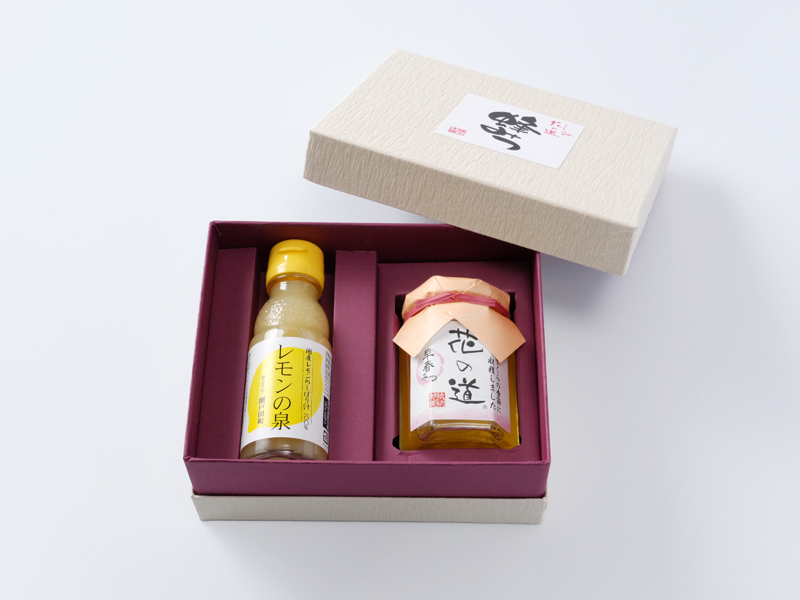 自然の花々から採れた国産蜂蜜「花の道」と、広島・瀬戸田産の希少な「エコレモン」果汁を詰め合わせた、爽やかなギフトセットです。